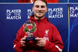 体育资讯11月5日讯 欧冠联赛阶段第4轮利物浦主场1-0击败皇马,头球破门的麦卡利斯特当选全场最佳。